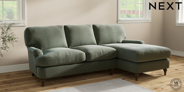 6.12.1 Buy Sadie Deep Relaxed Sit Medium Sofa Chaise - Right Hand Chunky Texture Mid Forest Green High Slim Turned - Mid from the Next UK online shop Click here to use our accessible website