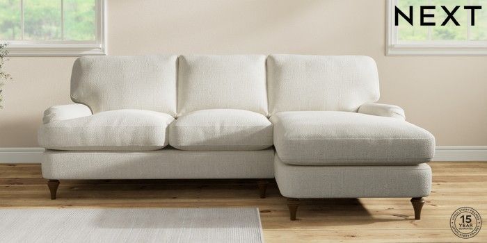 7.0.3 Buy Sadie Deep Relaxed Sit Medium Sofa Chaise - Right Hand Chunky Texture Oyster High Slim Turned - Mid from the Next UK online shop Click here to use our accessible website
