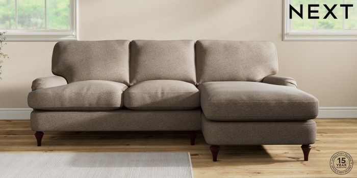 7.0.3 Buy Sadie Deep Relaxed Sit Medium Sofa Chaise - Right Hand Chunky Weave Dark Natural High Slim Turned - Dark Brown from the Next UK online shop Click here to use our accessible website