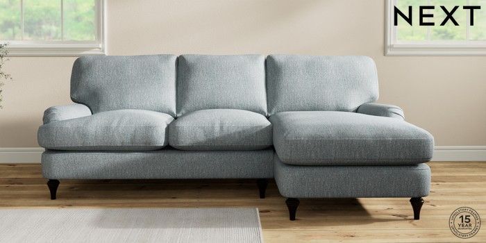 7.0.3 Buy Sadie Deep Relaxed Sit Medium Sofa Chaise - Right Hand Chunky Weave Mid Blue High Slim Turned - Dark from the Next UK online shop Click here to use our accessible website