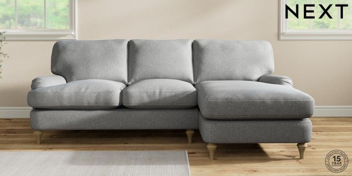 7.0.3 Buy Sadie Deep Relaxed Sit Medium Sofa Chaise - Right Hand Chunky Weave Mid Grey High Slim Turned - Light from the Next UK online shop Click here to use our accessible website