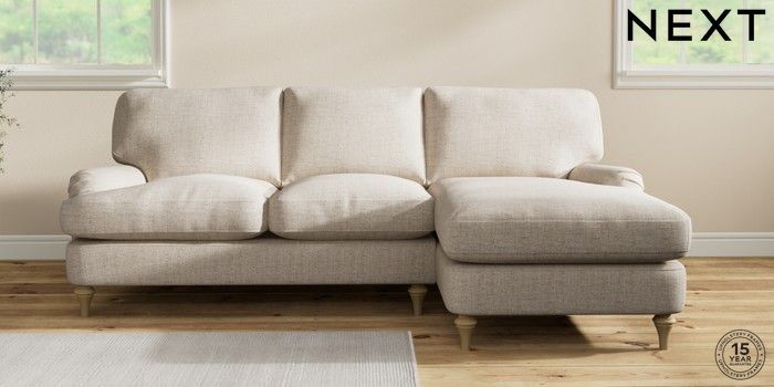 7.0.3 Buy Sadie Deep Relaxed Sit Medium Sofa Chaise - Right Hand Chunky Weave Mid Natural High Slim Turned - Light from the Next UK online shop Click here to use our accessible website