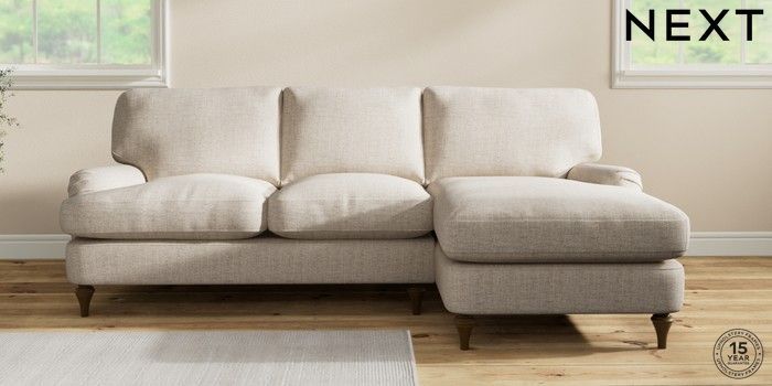 7.0.3 Buy Sadie Deep Relaxed Sit Medium Sofa Chaise - Right Hand Chunky Weave Mid Natural High Slim Turned - Mid from the Next UK online shop Click here to use our accessible website