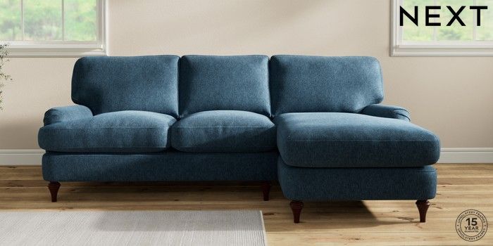 7.0.3 Buy Sadie Deep Relaxed Sit Medium Sofa Chaise - Right Hand Cotswold Chenille Dark Blue High Slim Turned - Dark Brown from the Next UK online shop Click here to use our accessible website