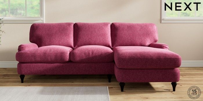 7.0.3 Buy Sadie Deep Relaxed Sit Medium Sofa Chaise - Right Hand Cotswold Chenille Dark Raspberry Pink High Slim Turned - Dark from the Next UK online shop Click here to use our accessible website