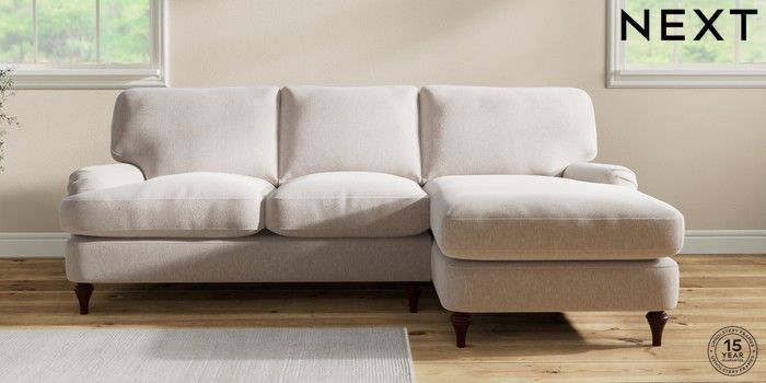 7.0.3 Buy Sadie Deep Relaxed Sit Medium Sofa Chaise - Right Hand Cotswold Chenille Oyster High Slim Turned - Dark Brown from the Next UK online shop Click here to use our accessible website