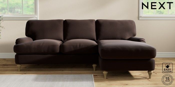 7.0.3 Buy Sadie Deep Relaxed Sit Medium Sofa Chaise - Right Hand Fine Chenille Easy Clean Chocolate Brown High Slim Turned - Light from the Next UK online shop Click here to use our accessible website