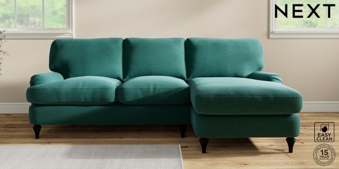 7.0.3 Buy Sadie Deep Relaxed Sit Medium Sofa Chaise - Right Hand Fine Chenille Easy Clean Dark Juniper Green High Slim Turned - Dark from the Next UK online shop Click here to use our accessible website