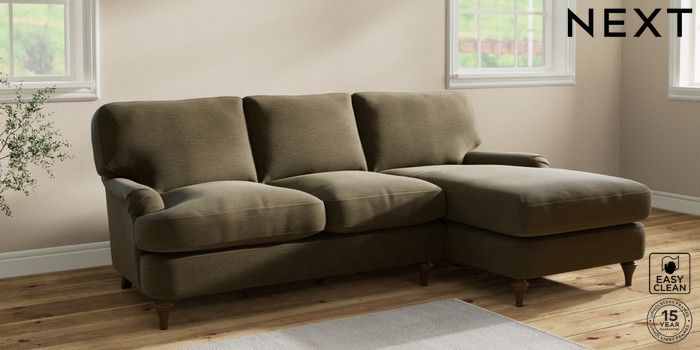 6.12.1 Buy Sadie Deep Relaxed Sit Medium Sofa Chaise - Right Hand Fine Chenille Easy Clean Dark Moss Green High Slim Turned - Mid from the Next UK online shop Click here to use our accessible website