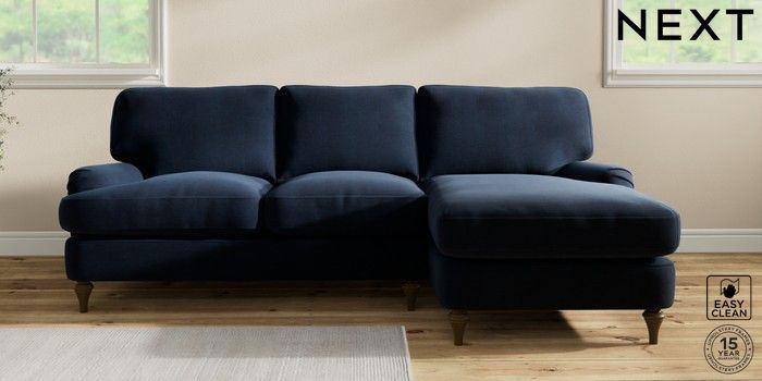 7.0.3 Buy Sadie Deep Relaxed Sit Medium Sofa Chaise - Right Hand Fine Chenille Easy Clean Dark Navy Blue High Slim Turned - Mid from the Next UK online shop Click here to use our accessible website