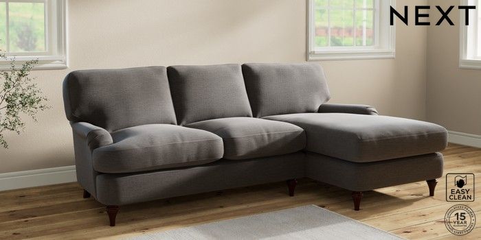 6.12.1 Buy Sadie Deep Relaxed Sit Medium Sofa Chaise - Right Hand Fine Chenille Easy Clean Dark Smoke Grey High Slim Turned - Dark Brown from the Next UK online shop Click here to use our accessible website