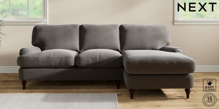 7.0.3 Buy Sadie Deep Relaxed Sit Medium Sofa Chaise - Right Hand Fine Chenille Easy Clean Dark Smoke Grey High Slim Turned - Dark Brown from the Next UK online shop Click here to use our accessible website