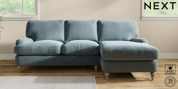 7.0.3 Buy Sadie Deep Relaxed Sit Medium Sofa Chaise - Right Hand Fine Chenille Easy Clean Mid Blue High Slim Turned - Light from the Next UK online shop Click here to use our accessible website
