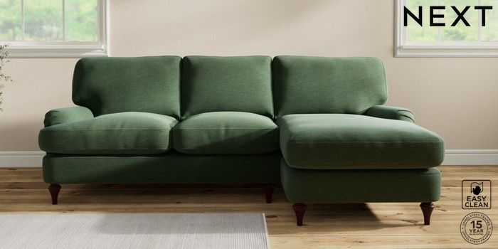7.0.3 Buy Sadie Deep Relaxed Sit Medium Sofa Chaise - Right Hand Fine Chenille Easy Clean Mid Khaki Green High Slim Turned - Dark Brown from the Next UK online shop Click here to use our accessible website