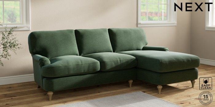 6.12.1 Buy Sadie Deep Relaxed Sit Medium Sofa Chaise - Right Hand Fine Chenille Easy Clean Mid Khaki Green High Slim Turned - Light from the Next UK online shop Click here to use our accessible website