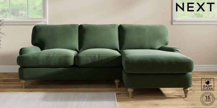 7.0.3 Buy Sadie Deep Relaxed Sit Medium Sofa Chaise - Right Hand Fine Chenille Easy Clean Mid Khaki Green High Slim Turned - Light from the Next UK online shop Click here to use our accessible website