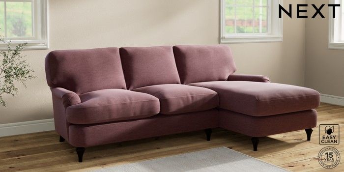 6.12.1 Buy Sadie Deep Relaxed Sit Medium Sofa Chaise - Right Hand Fine Chenille Easy Clean Mid Mulberry Purple High Slim Turned - Dark from the Next UK online shop Click here to use our accessible website