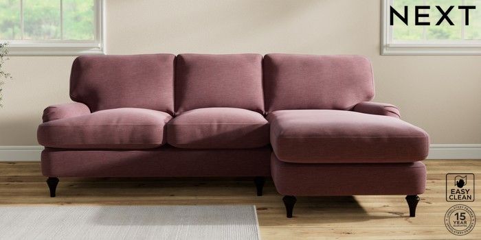 7.0.3 Buy Sadie Deep Relaxed Sit Medium Sofa Chaise - Right Hand Fine Chenille Easy Clean Mid Mulberry Purple High Slim Turned - Dark from the Next UK online shop Click here to use our accessible website