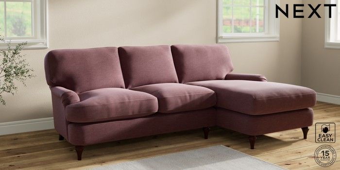 6.12.1 Buy Sadie Deep Relaxed Sit Medium Sofa Chaise - Right Hand Fine Chenille Easy Clean Mid Mulberry Purple High Slim Turned - Dark Brown from the Next UK online shop Click here to use our accessible website
