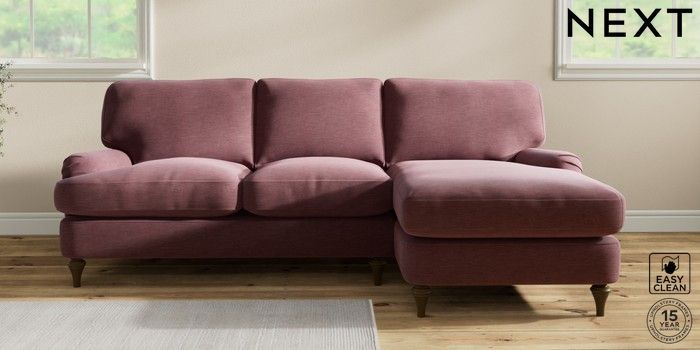 7.0.3 Buy Sadie Deep Relaxed Sit Medium Sofa Chaise - Right Hand Fine Chenille Easy Clean Mid Mulberry Purple High Slim Turned - Mid from the Next UK online shop Click here to use our accessible website