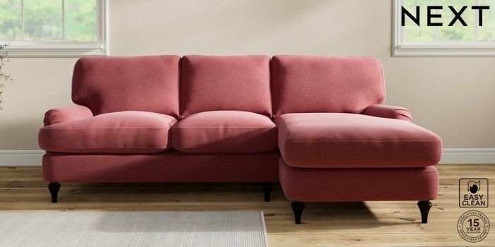 7.0.3 Buy Sadie Deep Relaxed Sit Medium Sofa Chaise - Right Hand Fine Chenille Easy Clean Mid Pink High Slim Turned - Dark from the Next UK online shop Click here to use our accessible website