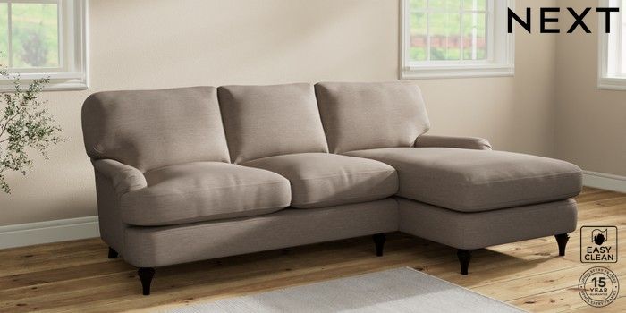 6.12.1 Buy Sadie Deep Relaxed Sit Medium Sofa Chaise - Right Hand Fine Chenille Easy Clean Mid Taupe Brown High Slim Turned - Dark from the Next UK online shop Click here to use our accessible website