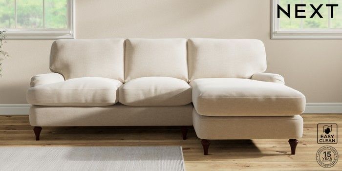 7.0.3 Buy Sadie Deep Relaxed Sit Medium Sofa Chaise - Right Hand Fine Chenille Easy Clean Oyster High Slim Turned - Dark Brown from the Next UK online shop Click here to use our accessible website