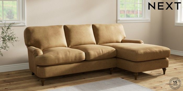 6.12.1 Buy Sadie Deep Relaxed Sit Medium Sofa Chaise - Right Hand Luxe Chenille Honey Yellow High Slim Turned - Mid from the Next UK online shop Click here to use our accessible website