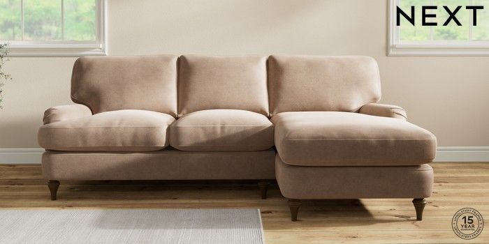 7.0.3 Buy Sadie Deep Relaxed Sit Medium Sofa Chaise - Right Hand Luxe Chenille Mid Natural High Slim Turned - Mid from the Next UK online shop Click here to use our accessible website