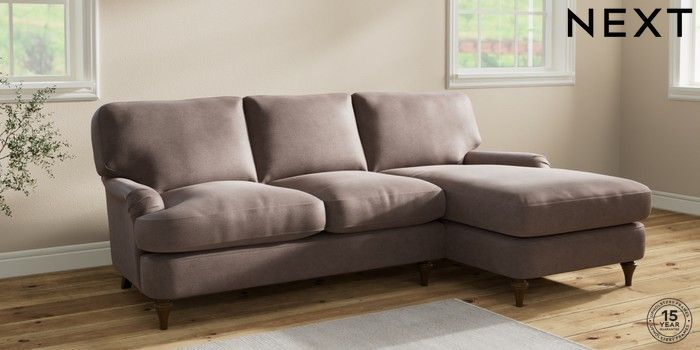6.12.1 Buy Sadie Deep Relaxed Sit Medium Sofa Chaise - Right Hand Luxe Chenille Mink Brown High Slim Turned - Mid from the Next UK online shop Click here to use our accessible website