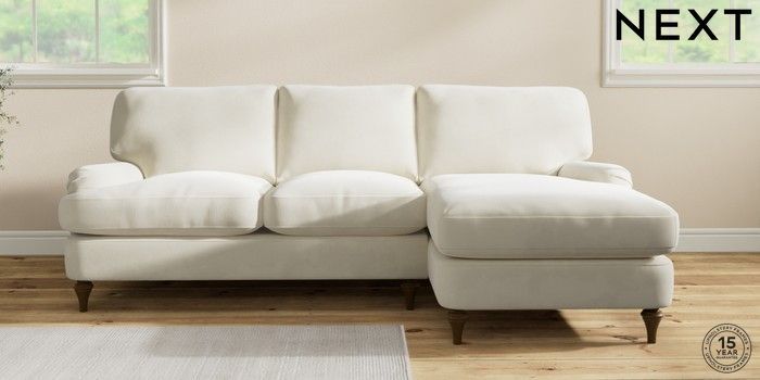 7.0.3 Buy Sadie Deep Relaxed Sit Medium Sofa Chaise - Right Hand Luxe Chenille Oyster High Slim Turned - Mid from the Next UK online shop Click here to use our accessible website