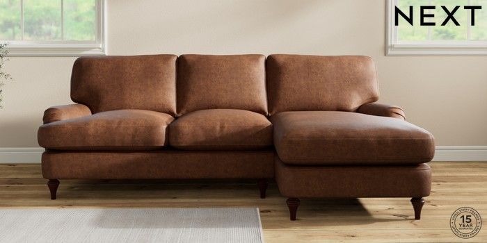 7.0.3 Buy Sadie Deep Relaxed Sit Medium Sofa Chaise - Right Hand Monza Faux Leather Easy Clean Chestnut Brown High Slim Turned - Dark Brown from the Next UK online shop Click here to use our accessible website