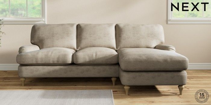 7.0.3 Buy Sadie Deep Relaxed Sit Medium Sofa Chaise - Right Hand Monza Faux Leather Easy Clean Mink Brown High Slim Turned - Light from the Next UK online shop Click here to use our accessible website