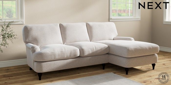 7.2.6 Buy Sadie Deep Relaxed Sit Medium Sofa Chaise - Right Hand Multi Weave Oyster High Slim Turned - Dark from the Next UK online shop Click here to use our accessible website