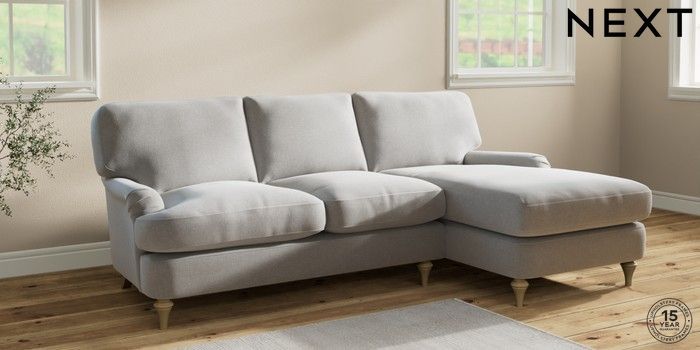 6.12.1 Buy Sadie Deep Relaxed Sit Medium Sofa Chaise - Right Hand Natural Mix Light Grey High Slim Turned - Light from the Next UK online shop Click here to use our accessible website