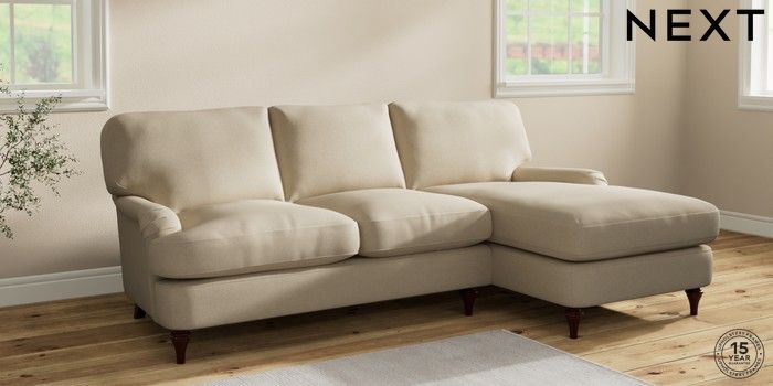 6.12.1 Buy Sadie Deep Relaxed Sit Medium Sofa Chaise - Right Hand Natural Mix Light Natural High Slim Turned - Dark Brown from the Next UK online shop Click here to use our accessible website