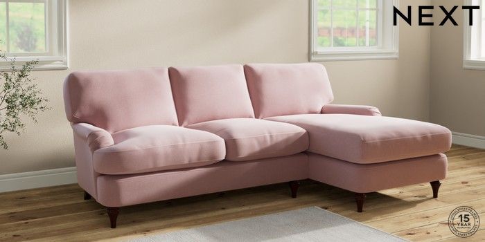 6.12.1 Buy Sadie Deep Relaxed Sit Medium Sofa Chaise - Right Hand Natural Mix Light Rose Pink High Slim Turned - Dark Brown from the Next UK online shop Click here to use our accessible website