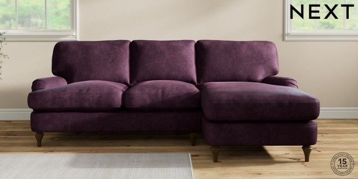7.0.3 Buy Sadie Deep Relaxed Sit Medium Sofa Chaise - Right Hand Plush Chenille Dark Plum Purple High Slim Turned - Mid from the Next UK online shop Click here to use our accessible website