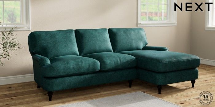 6.12.1 Buy Sadie Deep Relaxed Sit Medium Sofa Chaise - Right Hand Plush Chenille Dark Teal Green High Slim Turned - Dark from the Next UK online shop Click here to use our accessible website