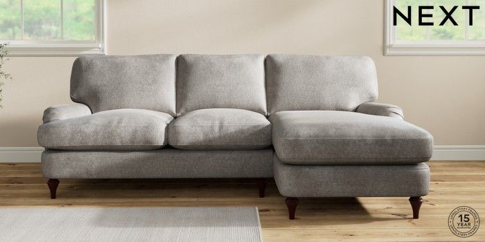 7.0.3 Buy Sadie Deep Relaxed Sit Medium Sofa Chaise - Right Hand Plush Chenille Light Grey High Slim Turned - Dark Brown from the Next UK online shop Click here to use our accessible website