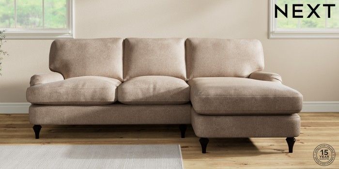 7.0.3 Buy Sadie Deep Relaxed Sit Medium Sofa Chaise - Right Hand Plush Chenille Mid Natural High Slim Turned - Dark from the Next UK online shop Click here to use our accessible website