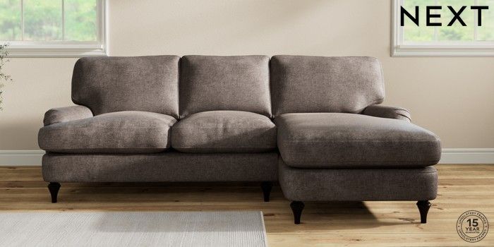 7.0.3 Buy Sadie Deep Relaxed Sit Medium Sofa Chaise - Right Hand Plush Chenille Mink Brown High Slim Turned - Dark from the Next UK online shop Click here to use our accessible website