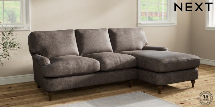 6.12.1 Buy Sadie Deep Relaxed Sit Medium Sofa Chaise - Right Hand Plush Chenille Mink Brown High Slim Turned - Mid from the Next UK online shop Click here to use our accessible website
