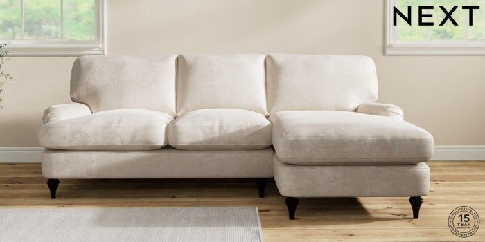 7.0.3 Buy Sadie Deep Relaxed Sit Medium Sofa Chaise - Right Hand Plush Chenille Oyster High Slim Turned - Dark from the Next UK online shop Click here to use our accessible website