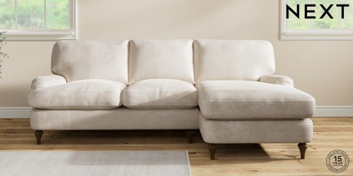7.0.3 Buy Sadie Deep Relaxed Sit Medium Sofa Chaise - Right Hand Plush Chenille Oyster High Slim Turned - Mid from the Next UK online shop Click here to use our accessible website