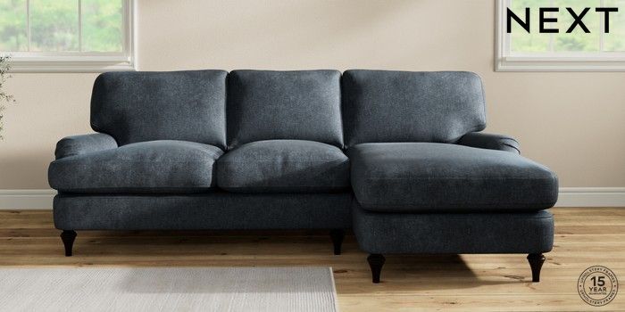 7.0.3 Buy Sadie Deep Relaxed Sit Medium Sofa Chaise - Right Hand Plush Chenille Slate Blue High Slim Turned - Dark from the Next UK online shop Click here to use our accessible website