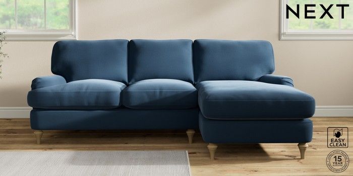 7.0.3 Buy Sadie Deep Relaxed Sit Medium Sofa Chaise - Right Hand Plush Velvet Easy Clean Airforce Blue High Slim Turned - Light from the Next UK online shop Click here to use our accessible website