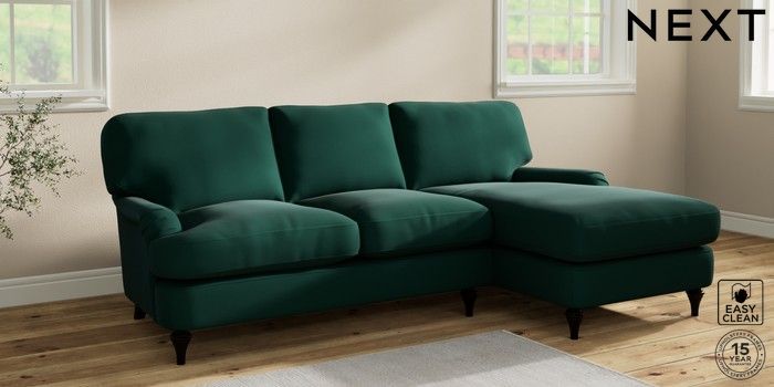 6.12.1 Buy Sadie Deep Relaxed Sit Medium Sofa Chaise - Right Hand Plush Velvet Easy Clean Bottle Green High Slim Turned - Dark from the Next UK online shop Click here to use our accessible website