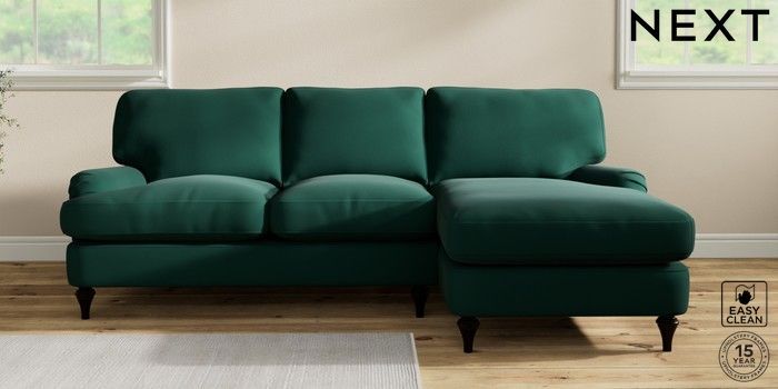 7.0.3 Buy Sadie Deep Relaxed Sit Medium Sofa Chaise - Right Hand Plush Velvet Easy Clean Bottle Green High Slim Turned - Dark from the Next UK online shop Click here to use our accessible website