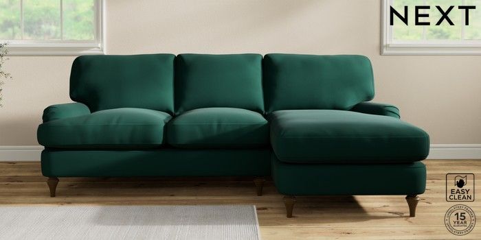 7.0.3 Buy Sadie Deep Relaxed Sit Medium Sofa Chaise - Right Hand Plush Velvet Easy Clean Bottle Green High Slim Turned - Mid from the Next UK online shop Click here to use our accessible website